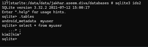 앱 databases 디렉토리에 ids2라는 이름의 DB가 저장되어 있다. 여기 내 크리덴셜이 저장됐다. 끝.